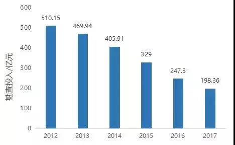 2012-2017年中国固体矿产勘查投入(来源:2018年中国矿产资源报告)