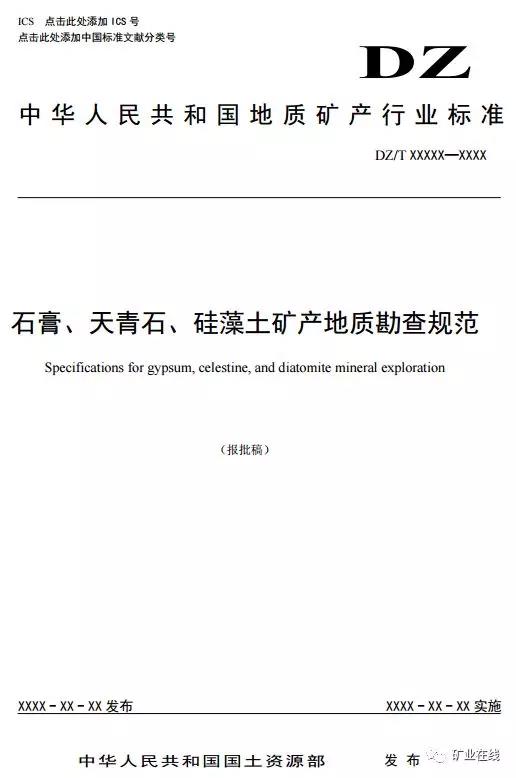 5、《石膏、天青石、硅藻土矿产地质勘查规范》(报批件)