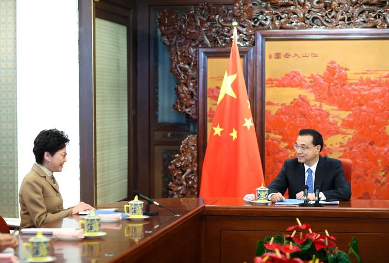 国务院总理李克强12月17日上午在中南海紫光阁会见来京述职的香港特别行政区行政长官林郑月娥,听取香港当前形势和特别行政区政府工作情况的汇报。