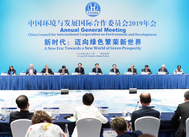 新华社杭州6月5日电 中共中央政治局常委、国务院副总理、中国环境与发展国际合作委员会主席韩正4日在浙江省杭州市出席国合会2019年年会并讲话。本次年会以“新时代:迈向绿色繁荣新世界”为主题。